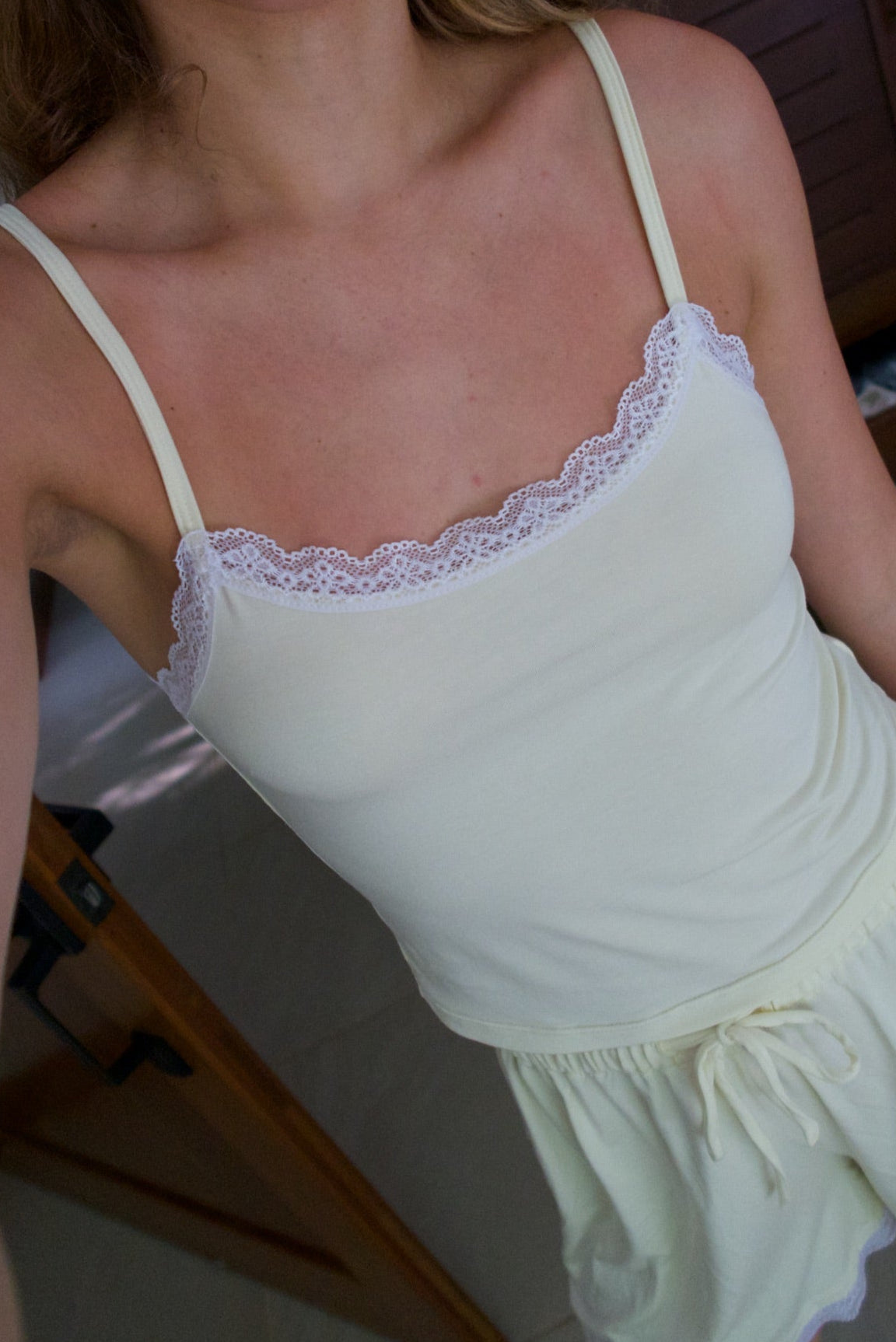 Meet Juliet. Our newest sleep tank top in an ultra soft and breathable modal fabric. Juliet features adjustable straps for the most flattering fit + soft & dainty lace trim.